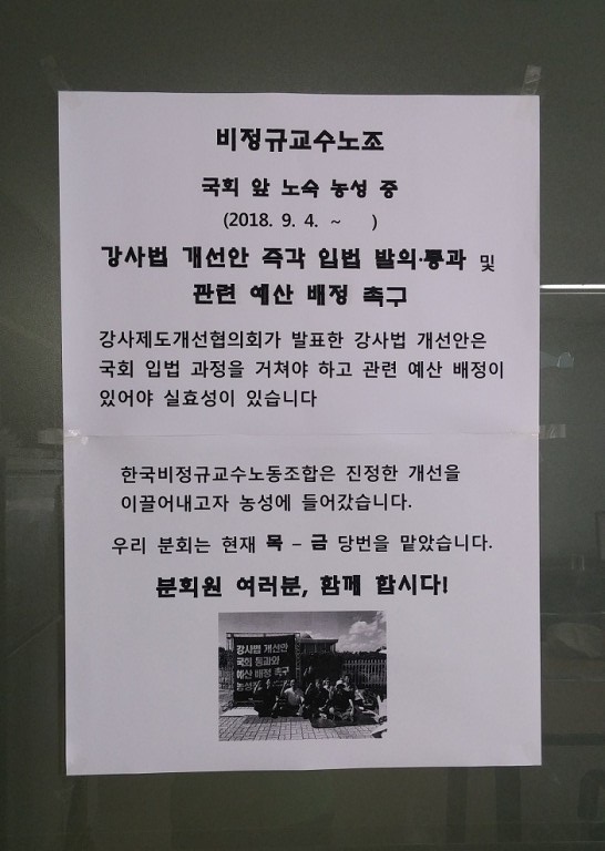 한국비정규교수노동조합은 2018년 9월 4일 국회 앞에서