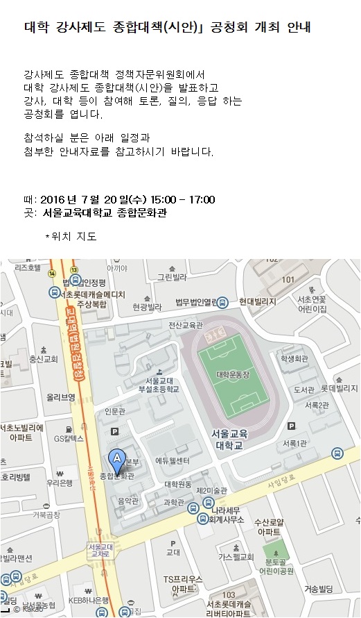 대학 강사제도 종합대책(시안)」 공청회 개최 안내