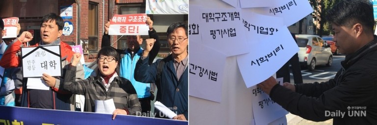 민주화를 위한 전국 교수 협의회(민교협), 전국교수노조, 한국비정규교수노조, 전국대학노조, 학생단위 등이 소속된 공대위는 △대학구조개혁평가사업 즉각 중단 △시간강사법 폐기 △사학비리 척결 △대학 민주성과 자율성 강화 등을 요구했다.
