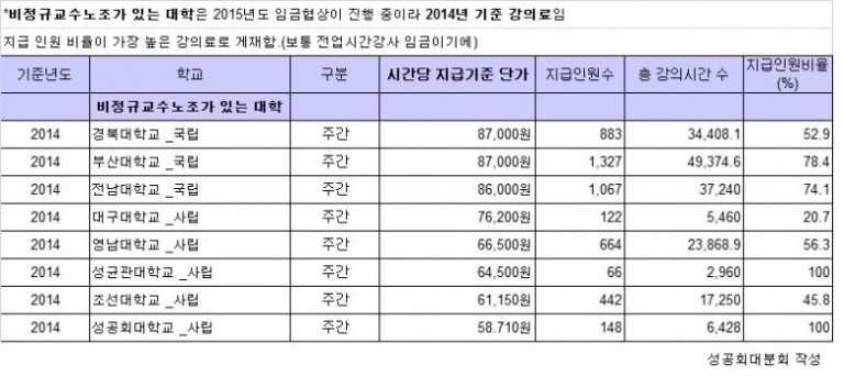 강사 시급 평균 5만1천원…대학별로 2만5천~8만원까지 격차 - 한국대학신문
