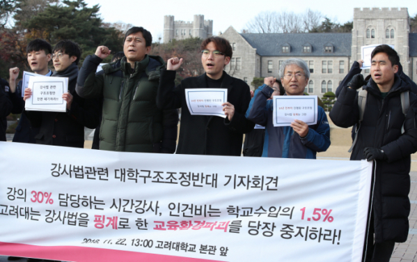 개정안은 △시간강사 임용기간 1년 이상 원칙 △강사 재임용 절차 3년까지 보장 △방학 기간 임금 지급