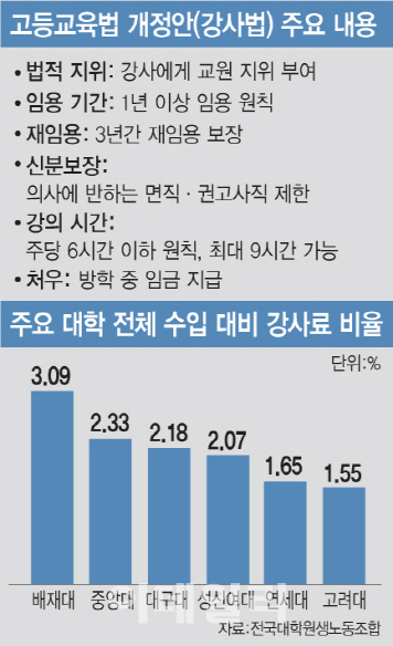 강사 “대학 수입 중 강사 인건비 2%…대학의 엄살"